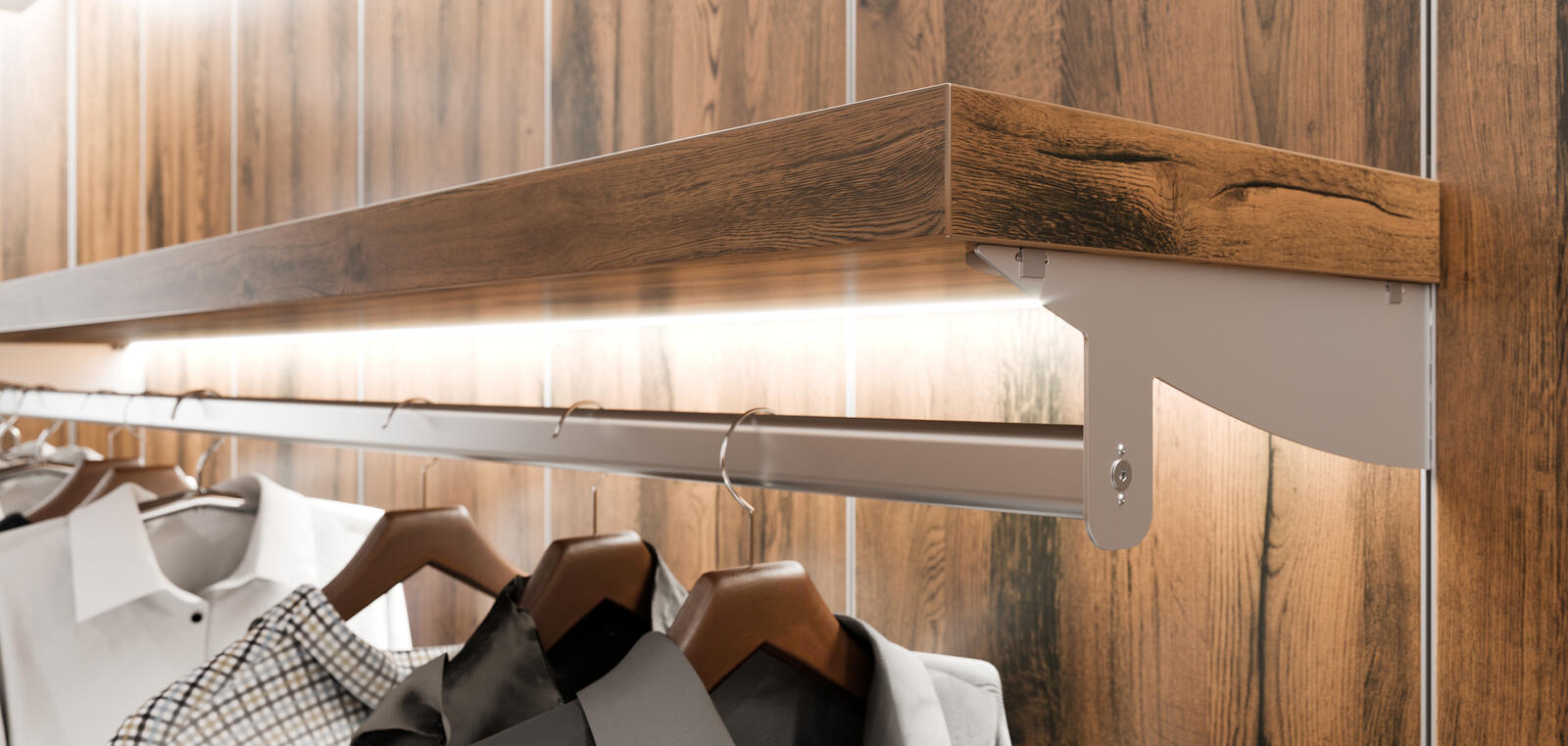- shelf with clothes rod bracket,