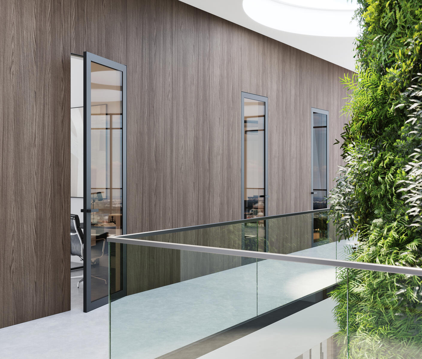 We also produce door frames without door headers (door leaf to the ceiling). We offer door frame heights to 3,700 mm. We also produce custom widths and heights. The door frames are made of anodized aluminium and can be painted according to the RAL K7, NCS and JAP Metallic swatch books at extra charge. The Efekta 40/00 concealed door frame has a 5-year warranty.