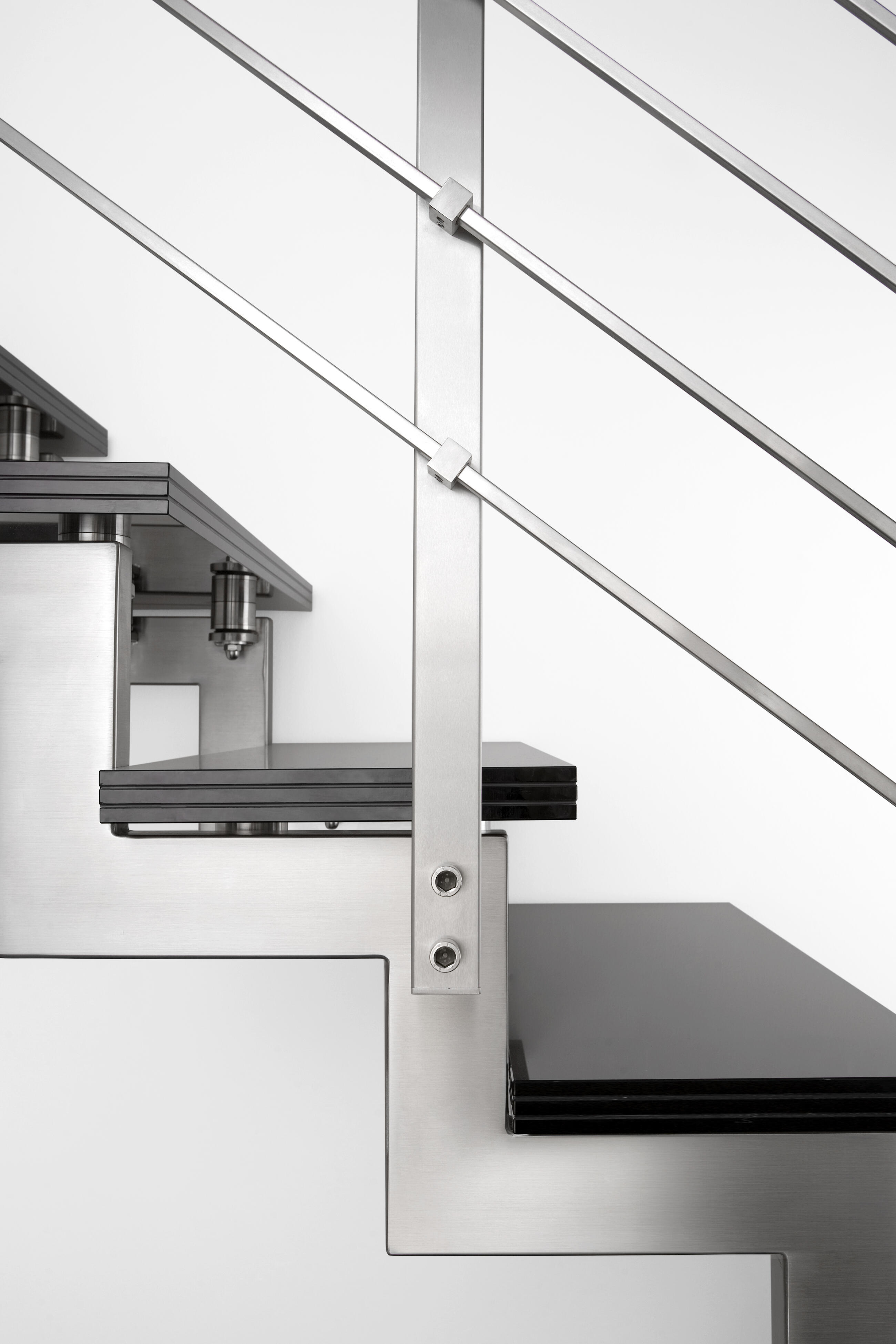 - rest of stairs: metal, wood, glass stainless steel