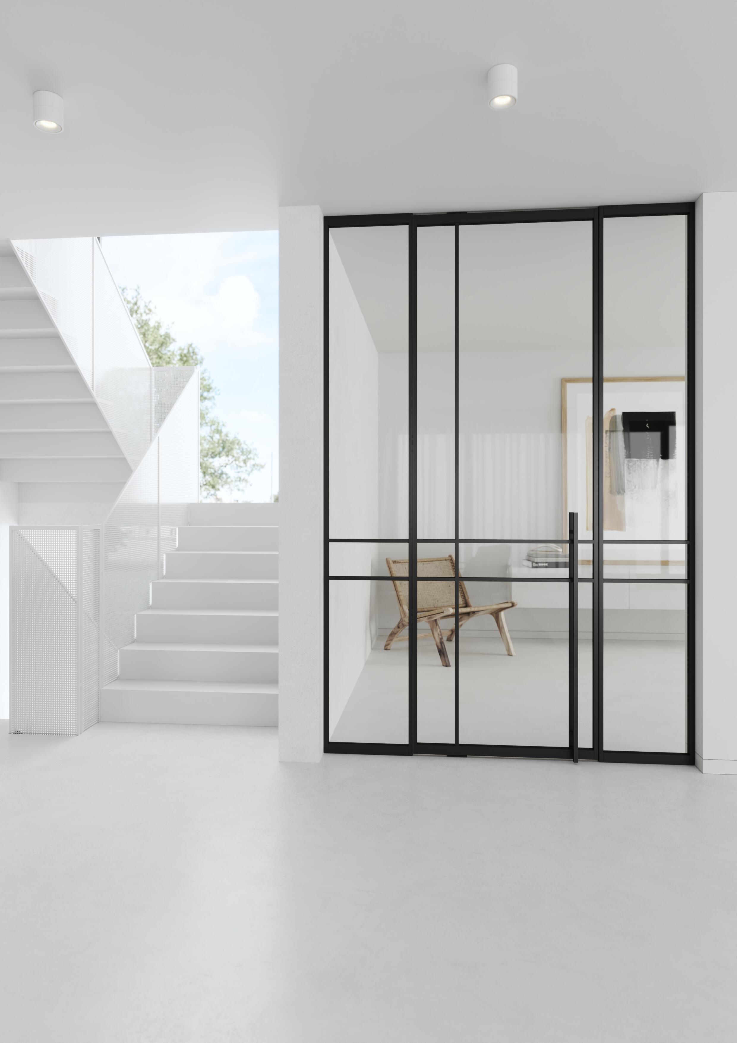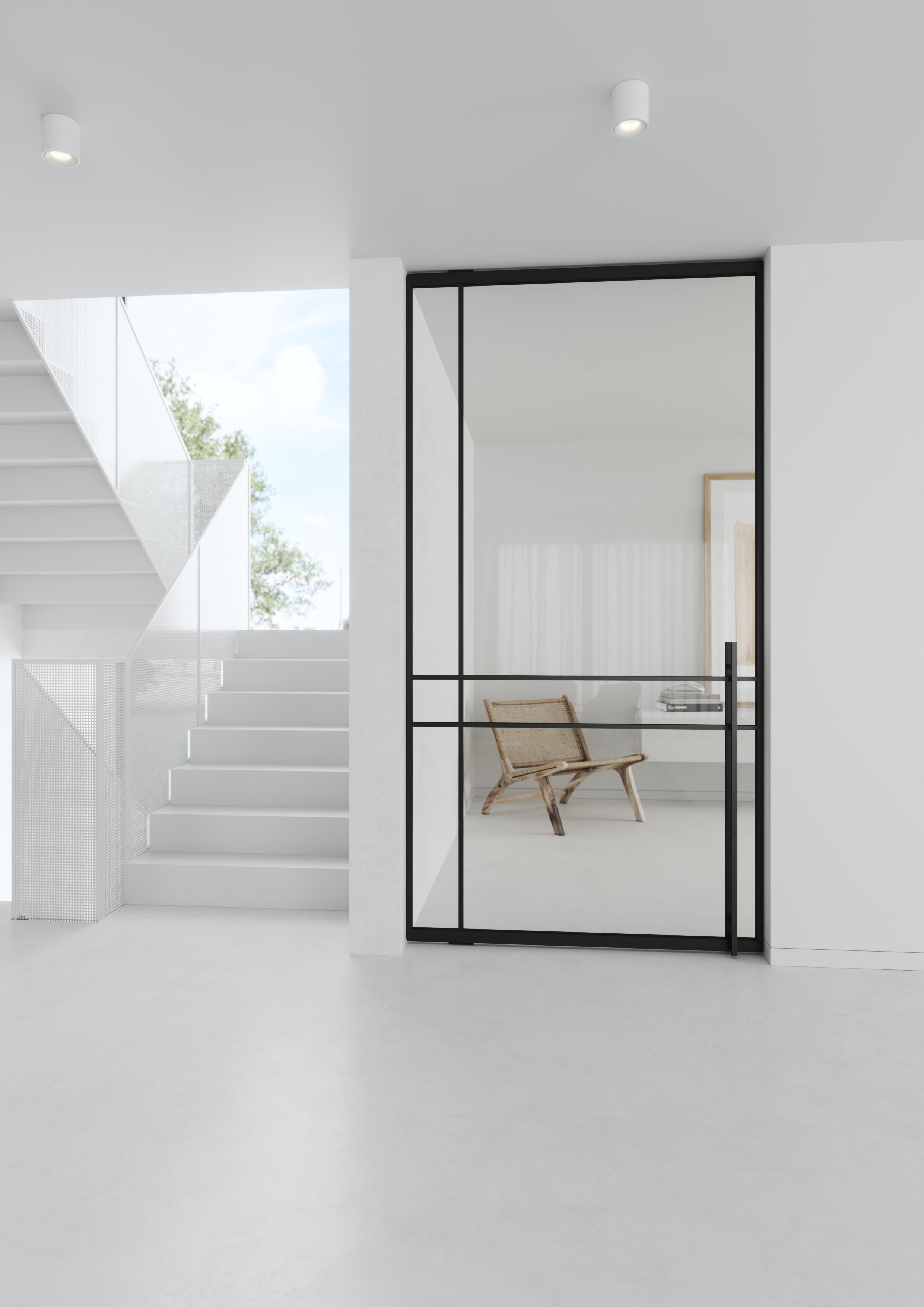 All models can be double-leaf and include fixed sidelights. The pivot hinge always moves depending on the height and width of the door. The colours are based on the RAL, NCS and JAP Metalic colour range swatches.