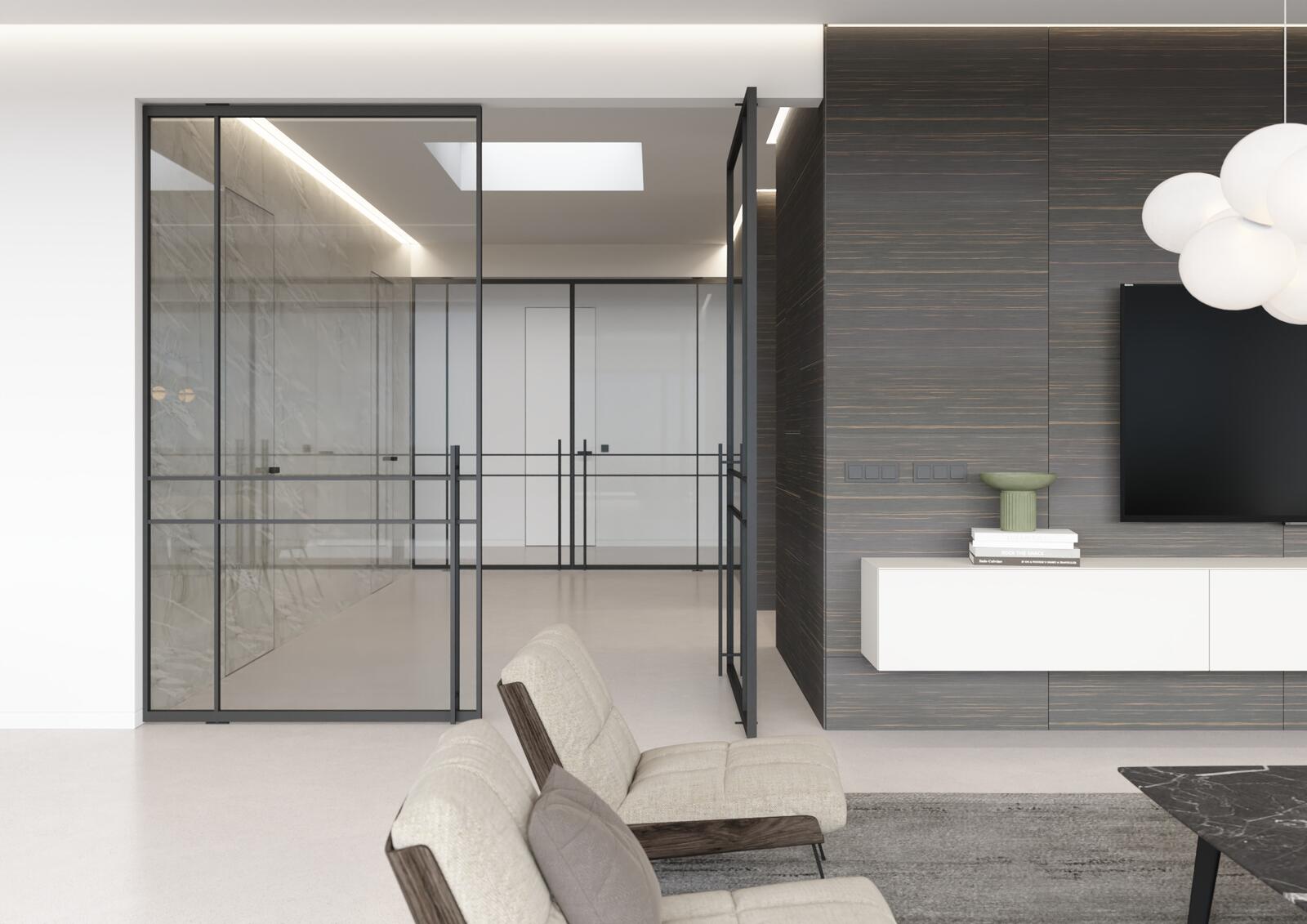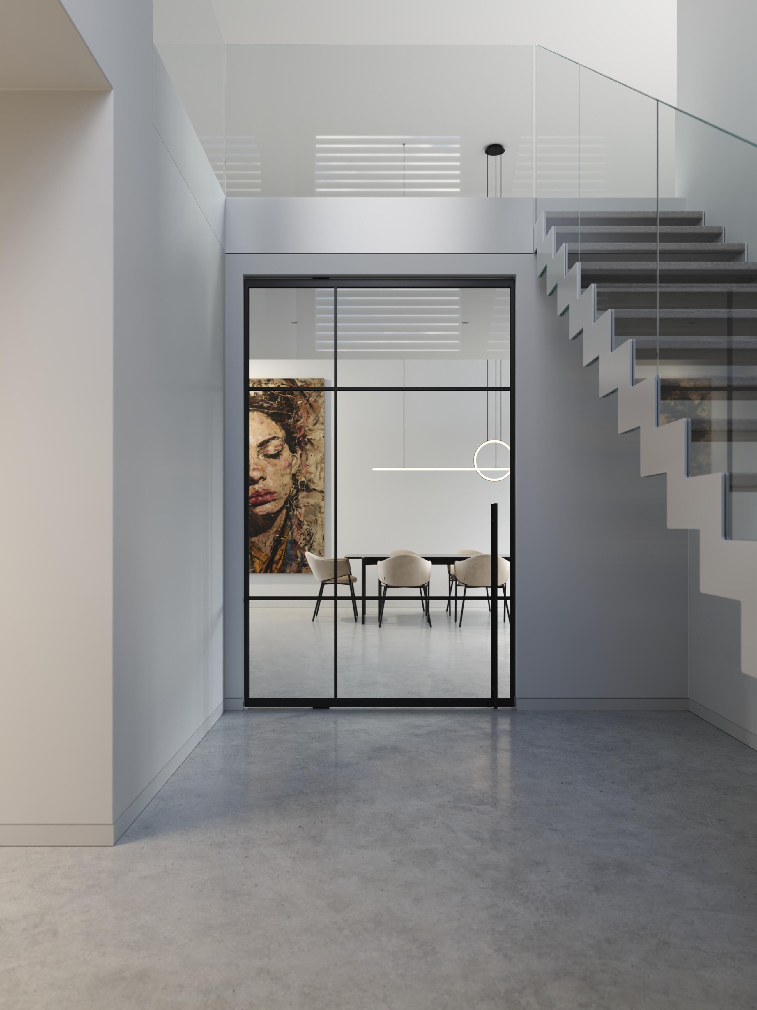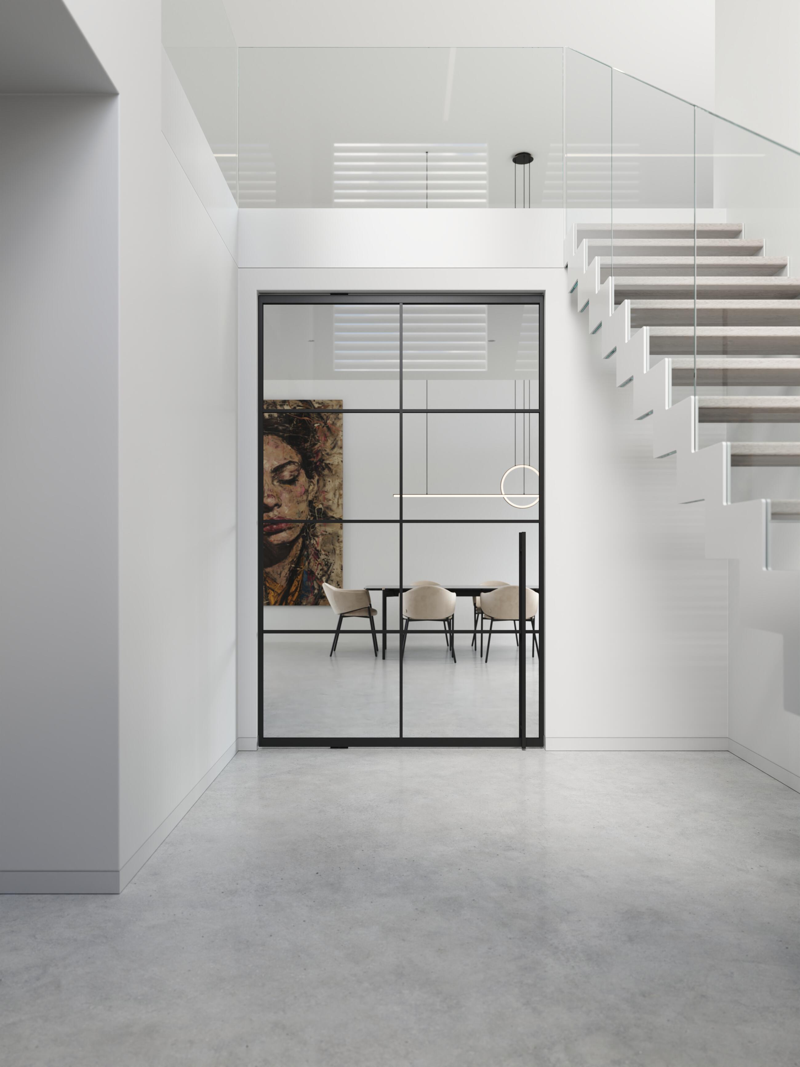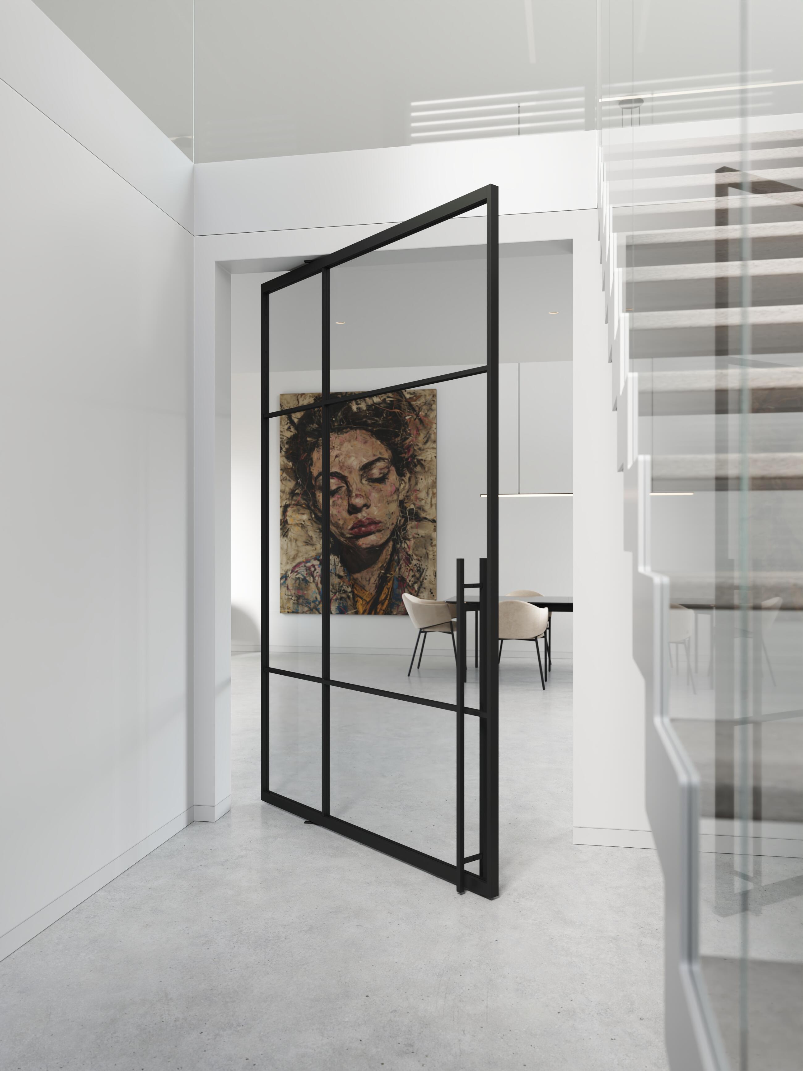 All models can be double-leaf and include fixed sidelights. The pivot hinge always moves depending on the height and width of the door. The colours are based on the RAL, NCS and JAP Metalic colour range swatches.