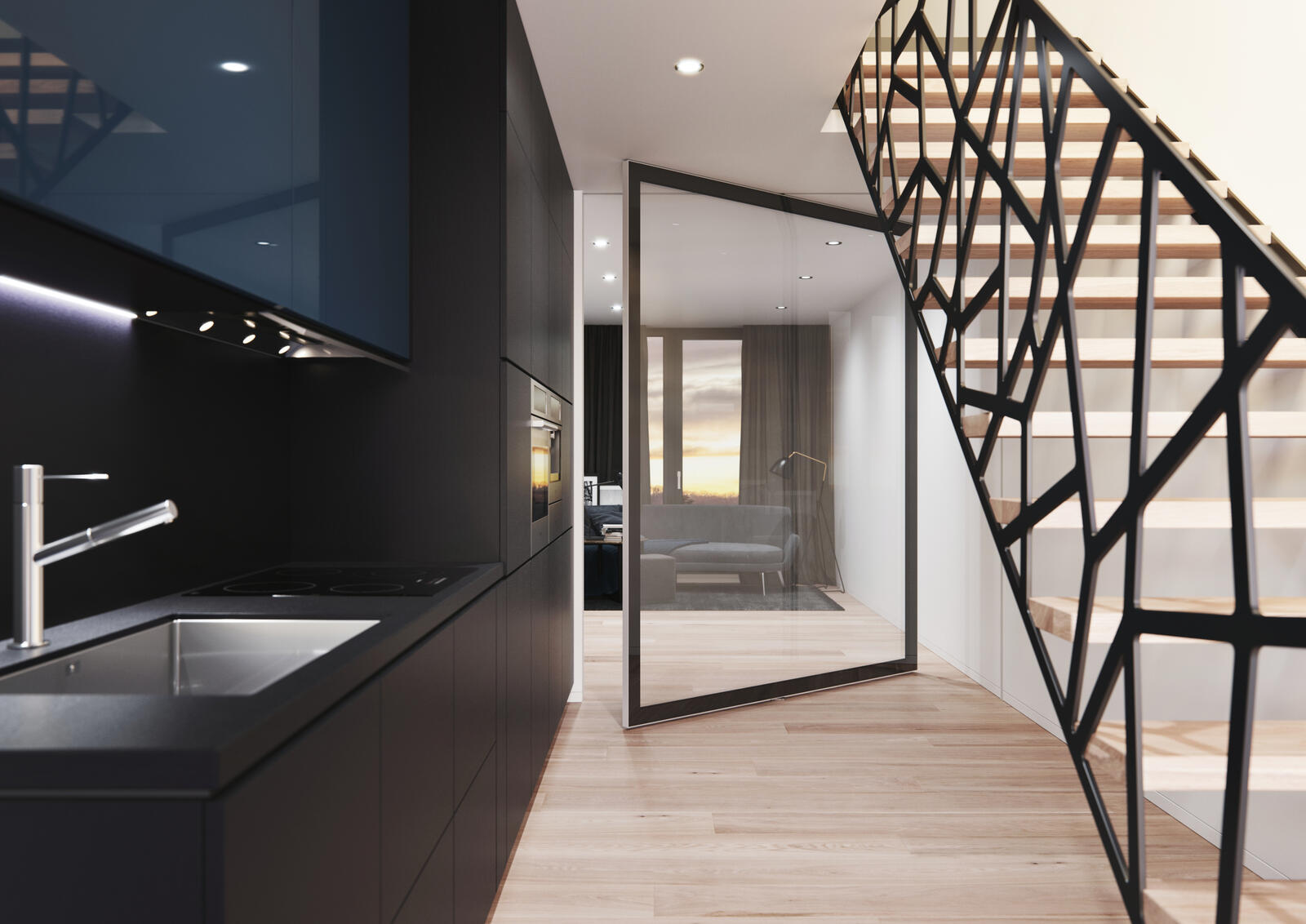 - The door frame is made of anodized aluminium profile with surface options according to the RAL, K7, NCS or JAP METALIC swatch books
