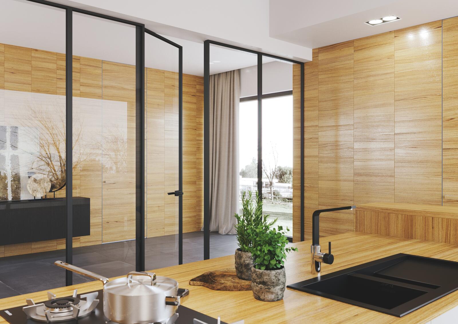 Idea hinged doors are for interiors only and are made of an aluminium frame with a glass panel. Related models are Ideanet doors (with a metal mesh) and Idealine doors (with attractive divided glass). Idea doors can only be single-leaf and double-leaf. The Idea line offers an optional side window panel. Idea hinged doors are intended for Garde door frames.