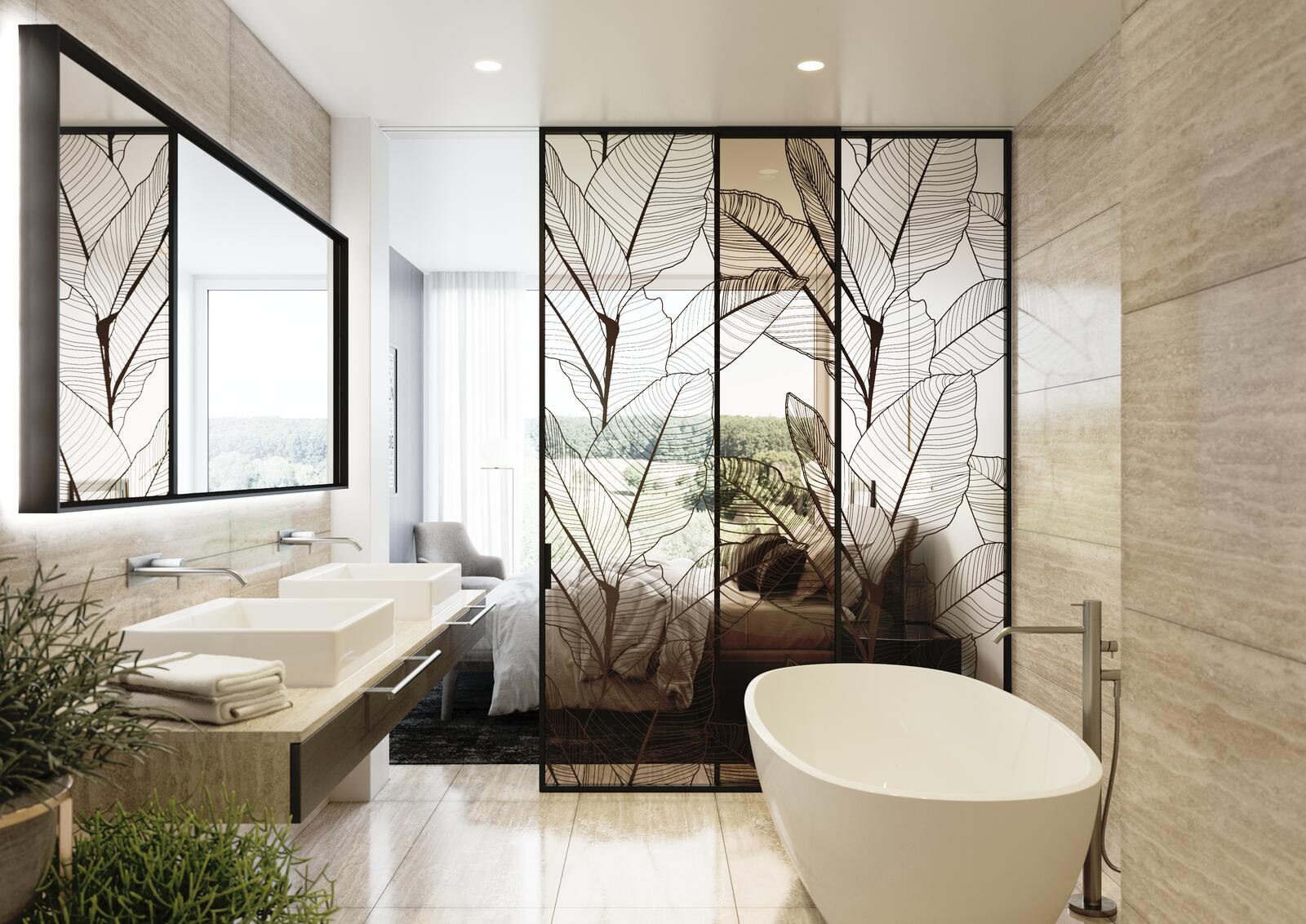 Tempered glass with decor is laminated with EVA film. This film is one of the top products on the market, with excellent properties such as cohesive strength. EVA film is available in the following versions: clear – transparent and translucent semi-milky – semi-transparent and translucent milky – opaque, only translucent opaque white – completely opaque, not translucent.