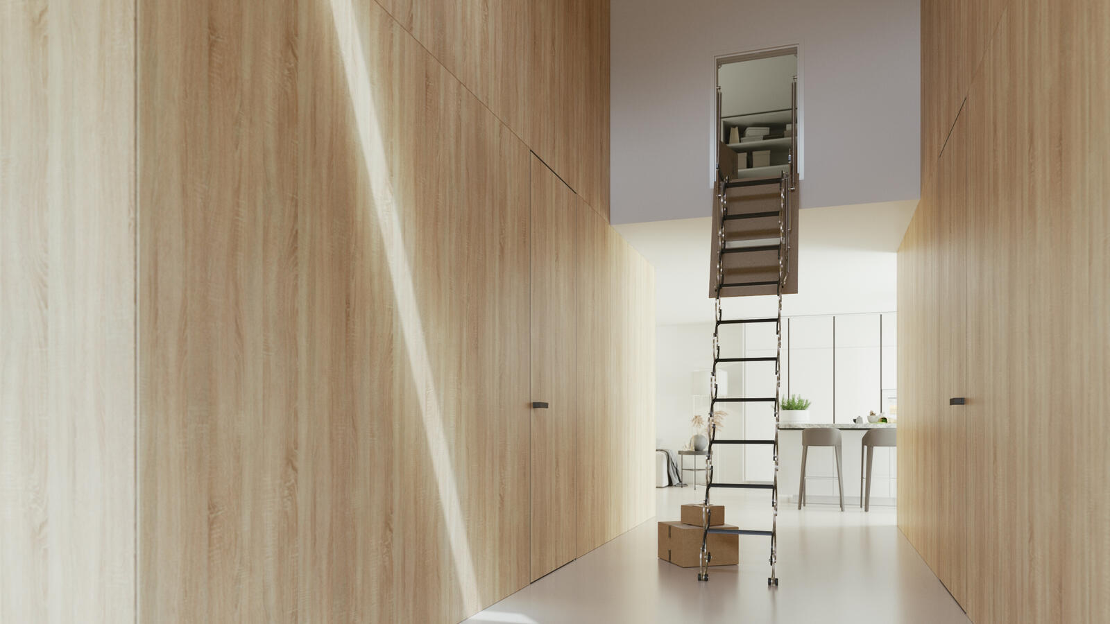 Like Lusso loft ladders, Verticale is our basic type of loft ladder. It is made for easy access to the attic when a passage is needed in the wall, rather than in the ceiling. The frame (passage) for the stairs can be made with custom dimensions.