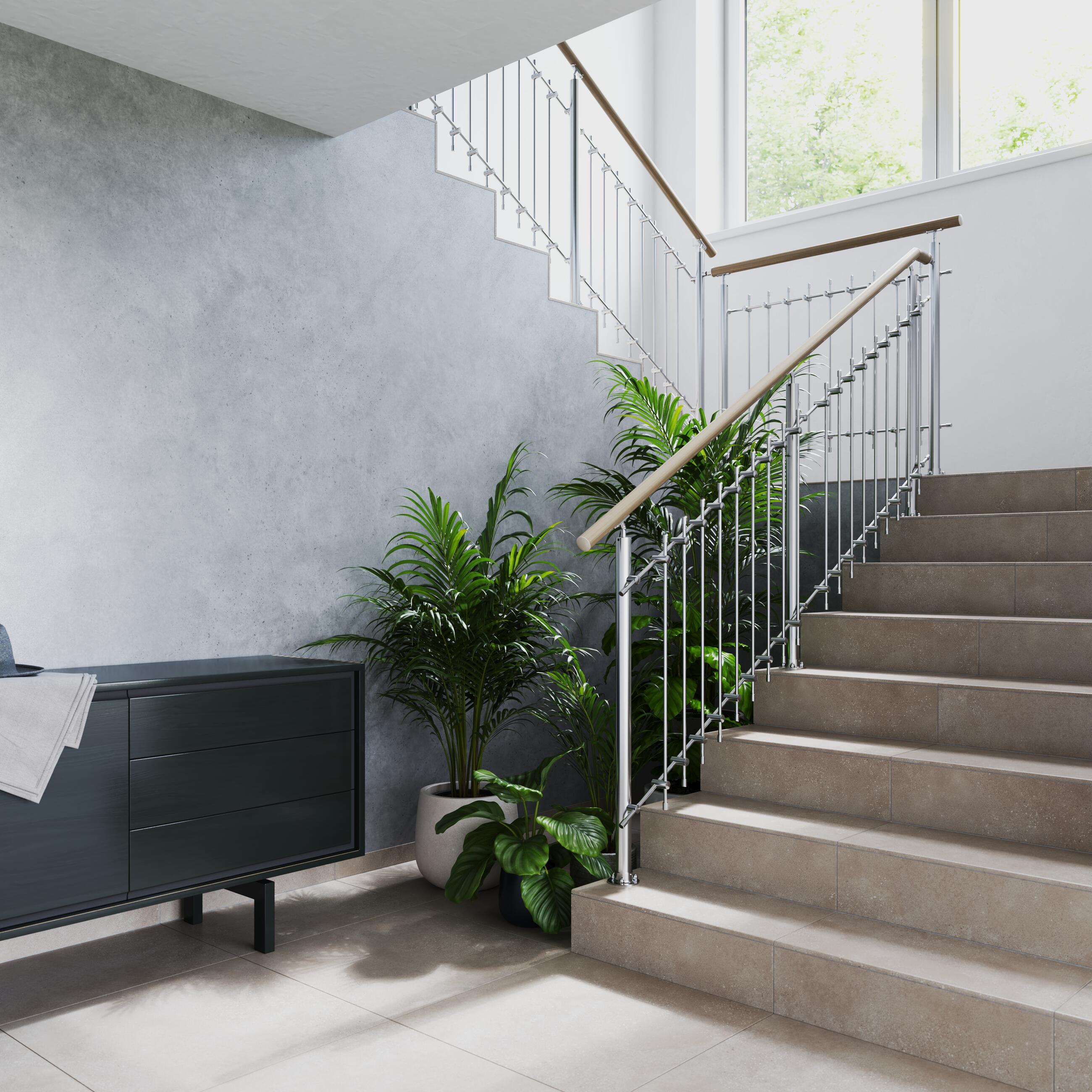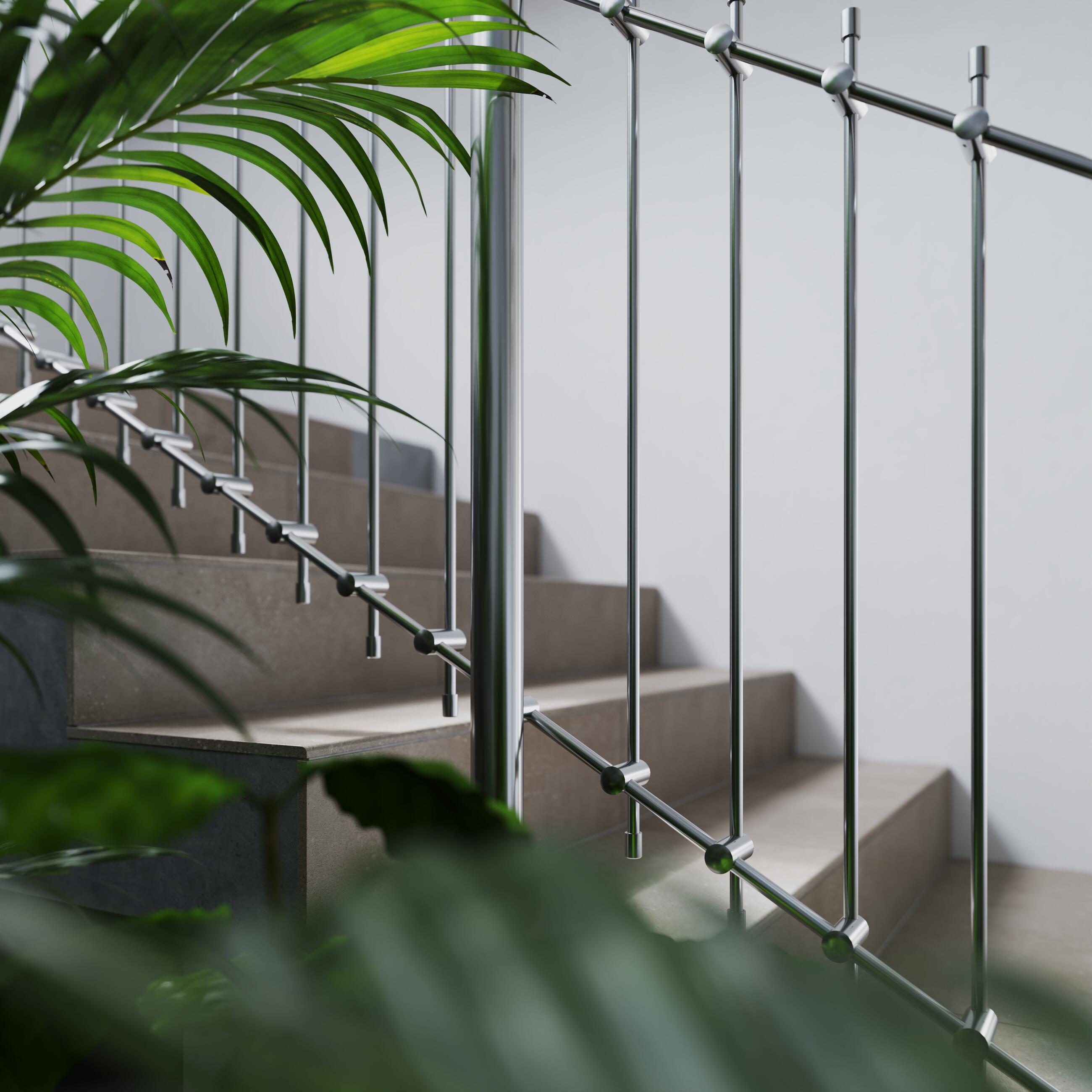 Alternatively, the handle can be made of stainless steel or wood. Stainless steel feet are anchored to the steps from above or from the side of the staircase. For the RICH model, we also produce the columns and the handle in colour shades according to the customer’s requirements; the rods remain in stainless steel.